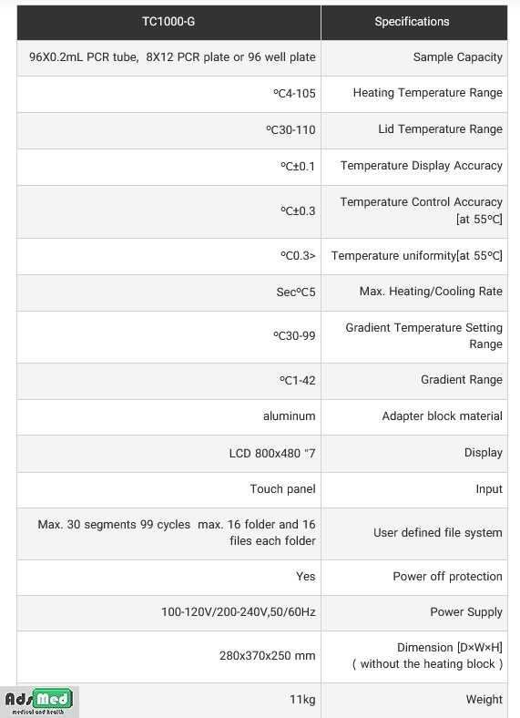 ترمال سایکلر گرادیانت تاچ اسکرین همراه با صفحه نمایش ۷ اینچی با ظرف نمونه PCR 8×۹۶ , ۰.۲×۰.۲ و پلیت ۹۶ خانهPCR سرعت گرمایش و سرمایش سریع رنج دما ۹۹-۴ درجه دمای گرادیانت ۹۹-۳۰ درجه...